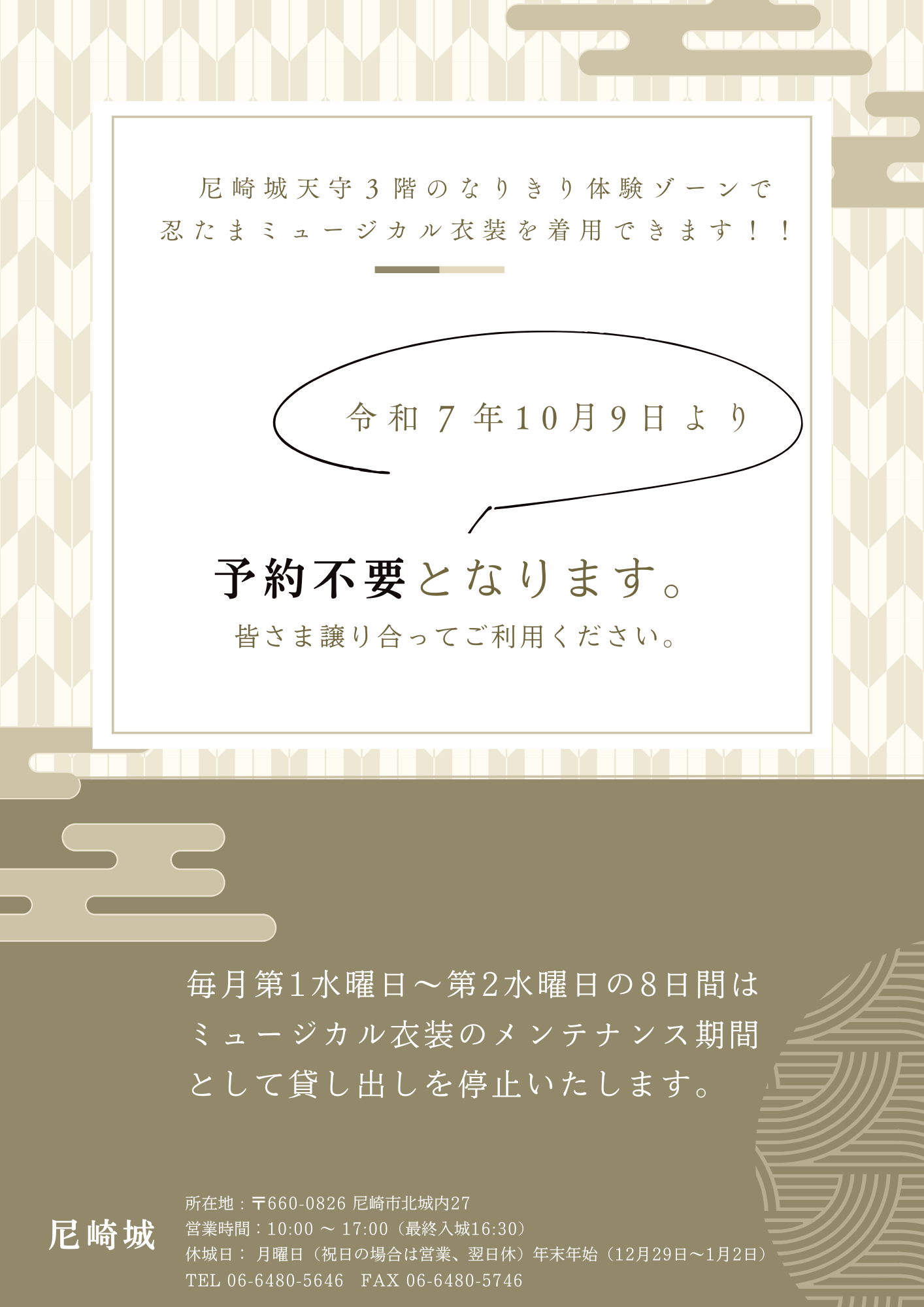 10月9日(木)より、衣装の貸出は予約不要となります!